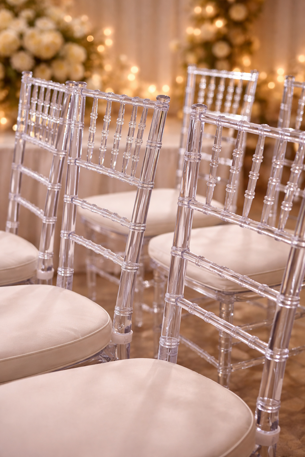 Designed to blend seamlessly into any luxury setting, the Crystal Chiavari Chair offers a refined balance of style and versatility. Its transparent frame creates a light, airy feel while enhancing the overall aesthetic without distraction. Paired with soft cushioned seating, it delivers both comfort and sophistication, making it a staple for beautifully curated events.